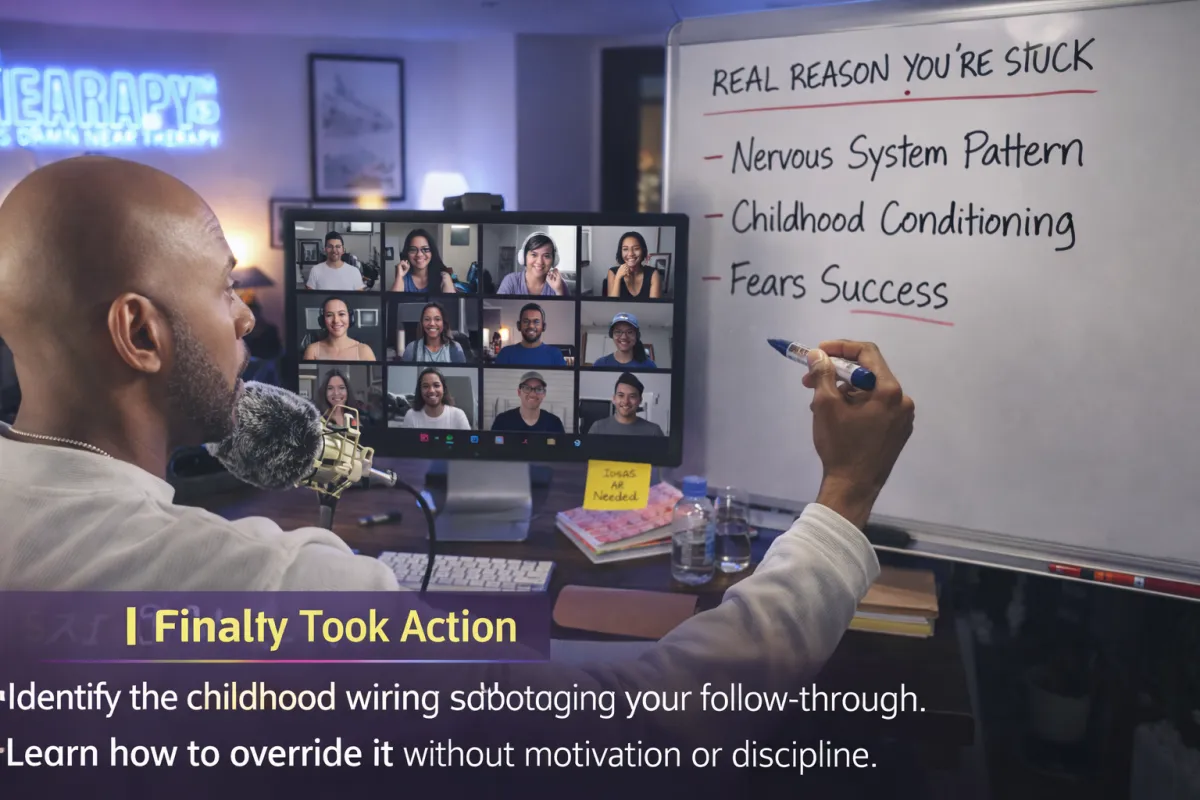 Live. That's the whole point. You show up, we work through your blocks in real-time, and you leave with clarity. Pre-recorded content doesn't create the same breakthrough.